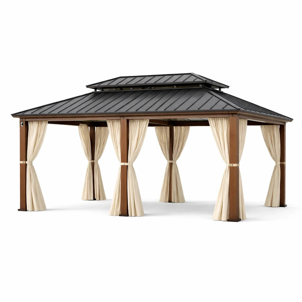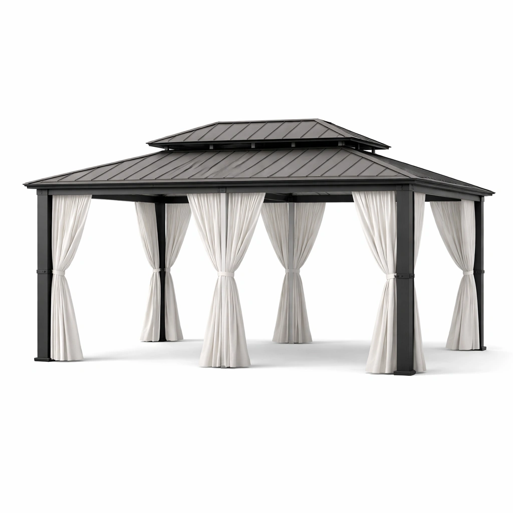 Pavillon aluminium stahldach polyester vorhänge