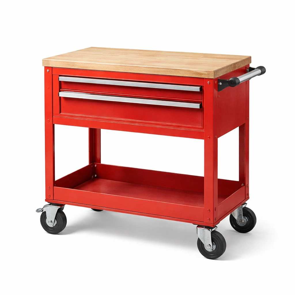Werkzeugwagen stahl holzoberfläche 2 schubladen