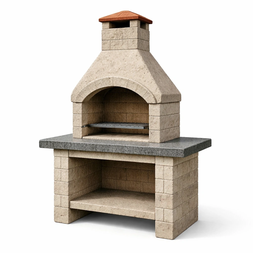 Outdoor-Steingrill aus feuerfestem Beton und Sandstein.