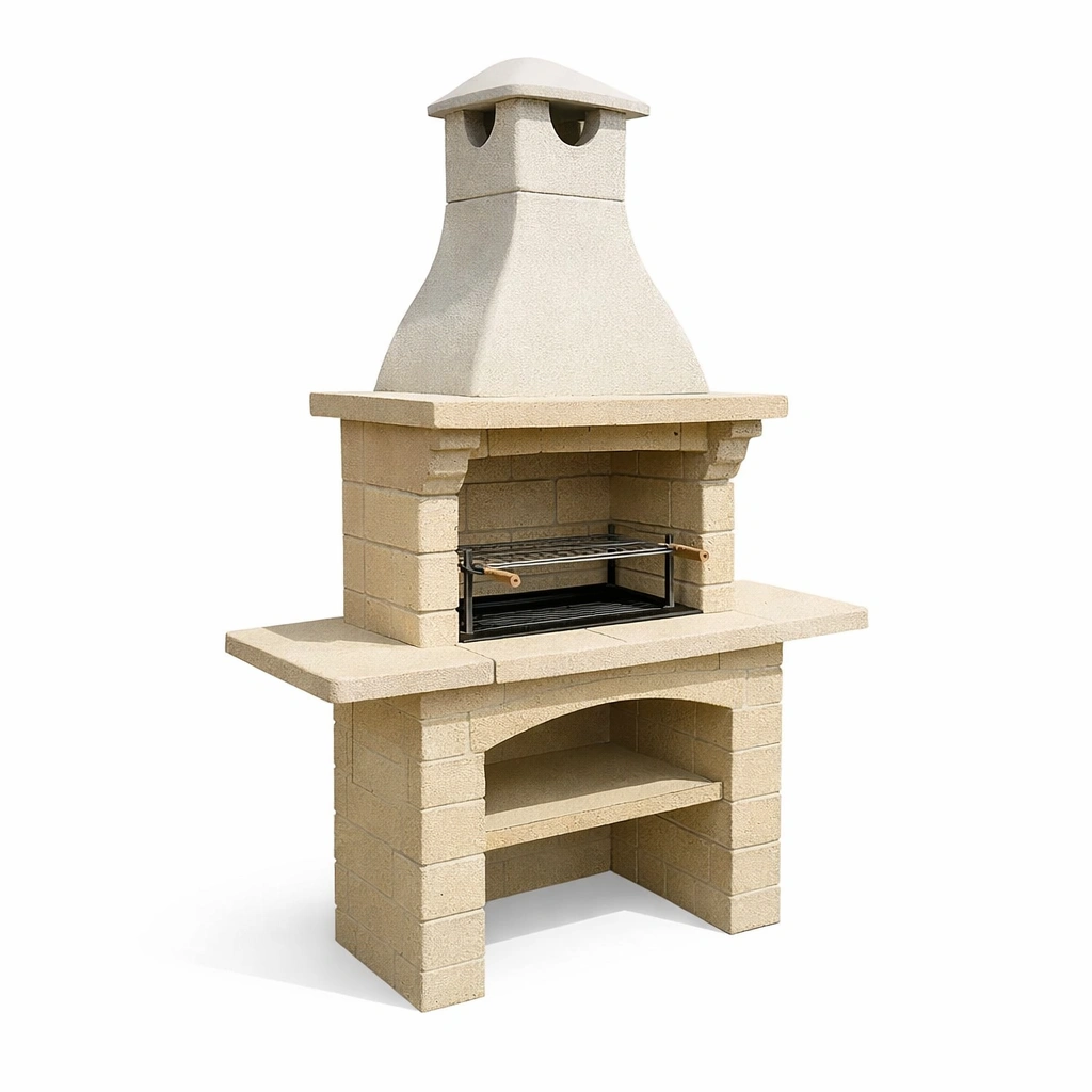 Dieser Gartengrill ist aus Sandstein gefertigt und verfügt über eine robuste Struktur für den Außenbereich. Der Grillrost besteht aus Stahl und ist herausnehmbar für einfaches Reinigen. Der Grill verwendet Kohle oder Holz als Brennstoff. Zu den Zubehörteilen gehören ein Grillrost und eine Ascheauffangschale. Die Abmessungen betragen 210 cm x 120 cm x 65 cm und das Gesamtgewicht beträgt 400 kg. Zur Reinigung einfach mit einem feuchten Tuch abwischen.