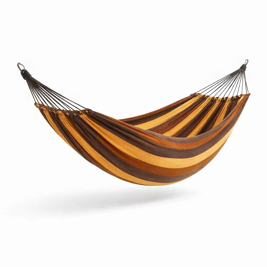 Die Hängematte besteht aus strapazierfähiger Canvas-Baumwolle, die für hohen Komfort sorgt.