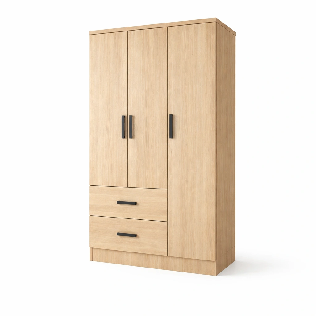 Kleiderschrank holzoptik dreitürig mit zwei schubladen spanplatte